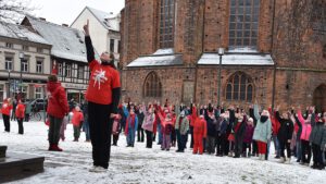 Es waren etwa 200 Kinder, Jugendliche und Erwachsene zur heutigen Aktion „One Billion Rising“ auf dem Winckelmann-Platz in Stendal gekommen. Bereits das sechste Mal, dass der Kreissportbund, die Gleichstellungsbeauftragte der Stadt und der TV Popcorn gemeinsam diese Veranstaltung als Zeichen gegen Gewalt an Frauen und Kindern organisiert und durchgeführt haben.
